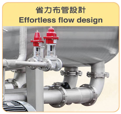 The new patent design Effortless Flow guiding pipe is vertically shorter compared to the traditional guiding pipe. Hence, lower nozzle pressure required to carry the fabric, good circulation speed. Also guiding pipe has more position change for fabric flow. This allows fabric to relax and softening, increasing the quality of dyeing. Effective result for curling fabrics.